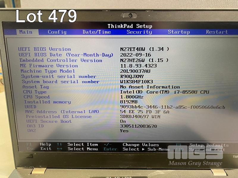 LAPTOP, LENOVO THINKPAD T580, TYPE 20L9, CORE i7 8550U (8TH GEN) @ 1.8GHz, 8GB DDR4 RAM, 256GB NVMe M.2 SSD, 15.6" WIDESCREEN (1920x1080), INTEL UHD GRAPHICS, Wi-Fi, BLUETOOTH, WINDOWS 11 PRO INSTALLED & USB-C POWER SUPPLY (NOTE: MARKS ON SCREEN) S/N:R90QJKNY