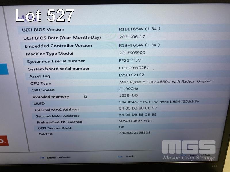 LAPTOP, LENOVO THINKPAD T14 Gen1, TYPE 20UE, AMD RYZEN 5 PRO 4650U @ 2.1GHz, 16GB DDR4 RAM, 512GB NVMe M.2 SSD, 14" TOUCHSCREEN (1920x1080), Wi-Fi, BLUETOOTH, WINDOWS 11 PRO INSTALLED (NO USB-C POWER SUPPLY) (NOTE: MARKS ON SCREEN) S/N:PF23YTSM