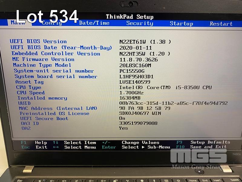 LAPTOP, LENOVO THINKPAD T480s, TYPE 20L8, CORE i5 8350U (8TH GEN) @ 1.7GHz, 16GB DDR4 RAM, 256GB NVMe M.2 SSD, 14" TOUCHSCREEN (1920x1080), INTEL HD VIDEO, Wi-Fi, BLUETOOTH, WINDOWS 11 PRO INSTALLED (NO USB-C POWER SUPPLY) (NOTE: SPOT ON SCREEN) S/N:PC15550G
