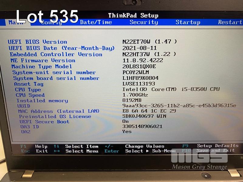LAPTOP, LENOVO THINKPAD T480s, TYPE 20L8, CORE i5 8350U (8TH GEN) @ 1.7GHz, 8GB DDR4 RAM, 256GB NVMe M.2 SSD, 14" TOUCHSCREEN (1920x1080), INTEL HD VIDEO, Wi-Fi, BLUETOOTH, WINDOWS 11 PRO INSTALLED (NO USB-C POWER SUPPLY) (NOTE: FAULTY USB-C PORT, MARKS ON SCREEN) S/N:PC0Y2WLM
