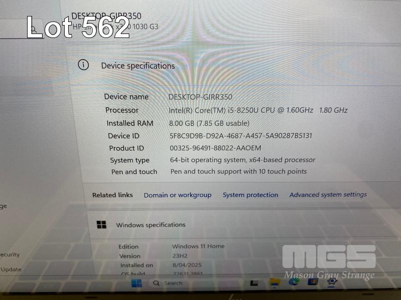 LAPTOP, HP ELITEBOOK x360 1030 G3, CORE i5 8250U (8TH GEN) @ 1.6GHz, 8GB DDR4 RAM, 256GB NVMe M.2 SSD, 13.3" TOUCHSCREEN (1920x1080), Wi-Fi, BLUETOOTH, WINDOWS 11 HOME INSTALLED & USB-C POWER SUPPLY (NOTE: DAMAGED SCREEN HINGE) S/N:5CD8470RN3