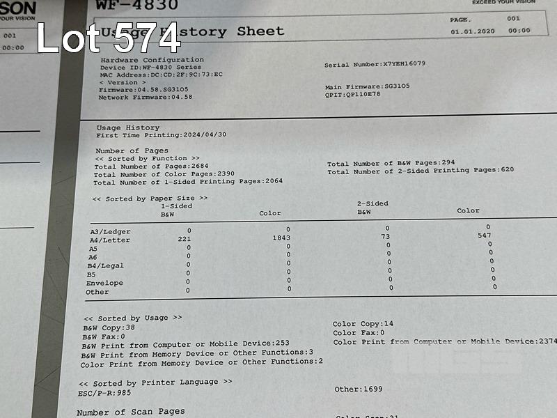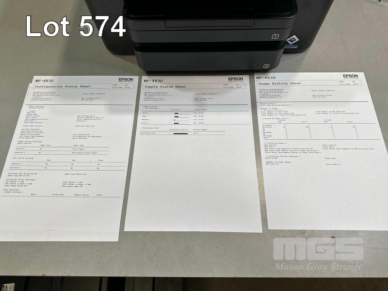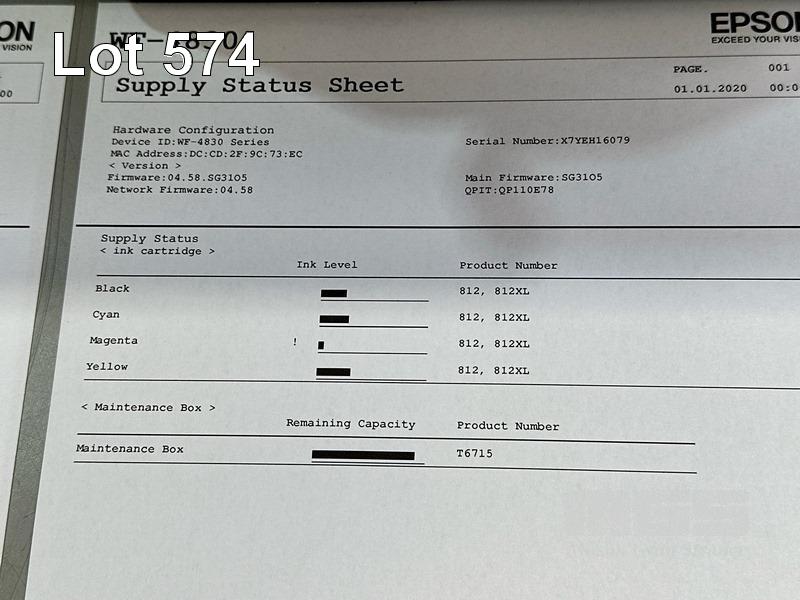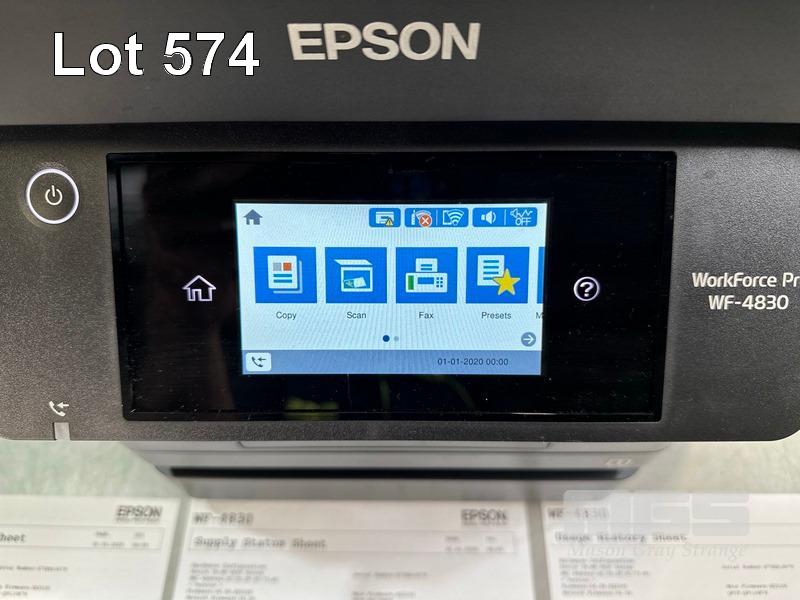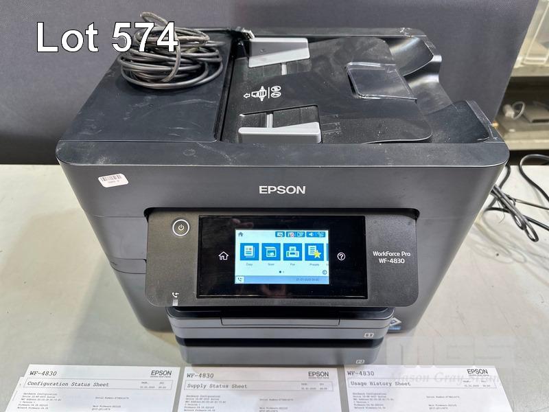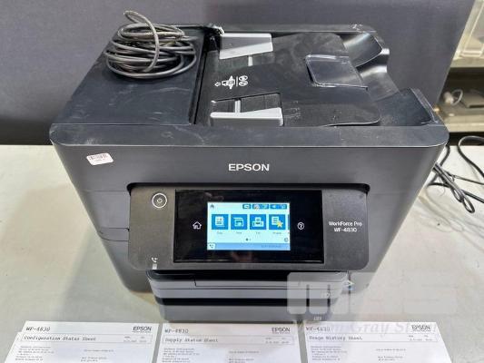 PRINTER, EPSON WORKFORCE PRO WF-4830 MFC INKJET, USB, NETWORK, 2,390 COLOUR & 294 B&W PAGES (TEST PAGE ATTACHED) (NOTE: MAGENTA INK IS LOW)