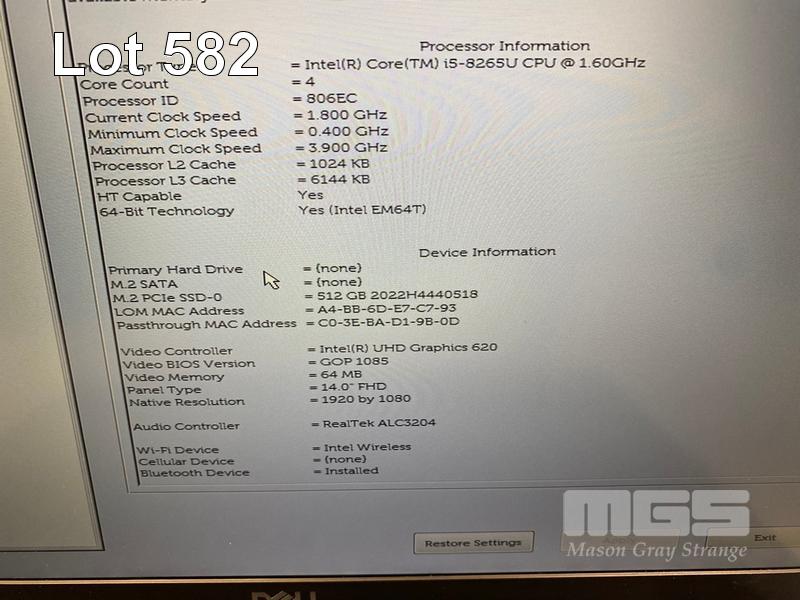 LAPTOP, DELL LATITUDE 5400, CORE i5 8265U (8TH GEN) @ 1.6GHz, 8GB DDR4 RAM, 512GB NVMe M.2 SSD, 14" WIDESCREEN (1920x1080), INTEL UHD GRAPHICS 620, Wi-Fi, BLUETOOTH, WINDOWS 11 HOME INSTALLED & POWER SUPPLY (NOTE: MARKS ON SCREEN) S/N:69BR453