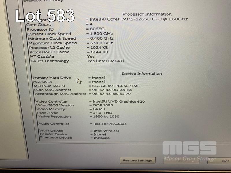 LAPTOP, DELL LATITUDE 5400, CORE i5 8265U (8TH GEN) @ 1.6GHz, 8GB DDR4 RAM, 512GB NVMe M.2 SSD, 14" WIDESCREEN (1920x1080), INTEL UHD GRAPHICS 620, Wi-Fi, BLUETOOTH, WINDOWS 11 HOME INSTALLED (NO POWER SUPPLY) (NOTE: MINOR MARKS ON SCREEN, BATTERY NOT HOLDING CHARGE) S/N:HT3HYY2