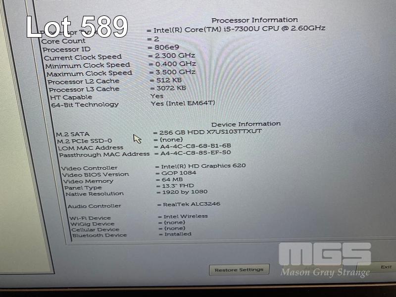 LAPTOP, DELL LATITUDE 7380, CORE i5 7300U (7TH GEN) @ 2.6GHz, 8GB DDR4 RAM, 256GB M.2 SSD, 13.3" WIDESCREEN (1920x1080), INTEL HD GRAPHICS 620, Wi-Fi, BLUETOOTH, WINDOWS 10 HOME INSTALLED & POWER SUPPLY (NOTE: MISSING NETWORK PORT COVER) S/N:2YVVPH2