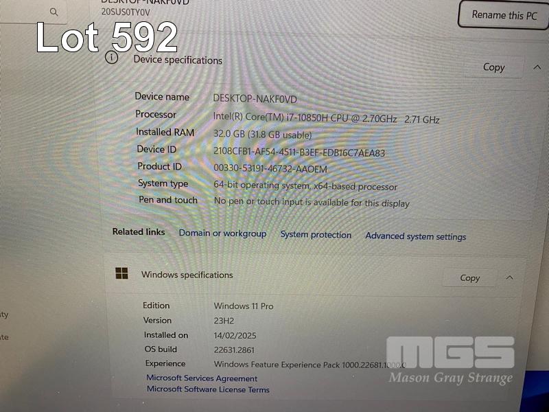 LAPTOP, LENOVO THINKPAD P15 GEN 1 MOBILE WORKSTATION, TYPE 20SU, CORE i7 10850H (10TH GEN) @ 2.7GHz, 32GB DDR4 RAM, 512GB NVMe M.2 SSD, 15.6" WIDESCREEN (1920x1080), 4GB NVIDIA QUADRO T2000 VIDEO, Wi-Fi, BLUETOOTH, WINDOWS 11 PRO INSTALLED (NO POWER SUPPLY) (NOTE: DAMAGED USB PORT, SPEAKER FAULT, MINOR MARKS ON SCREEN) S/N:PF1SQ8ZS