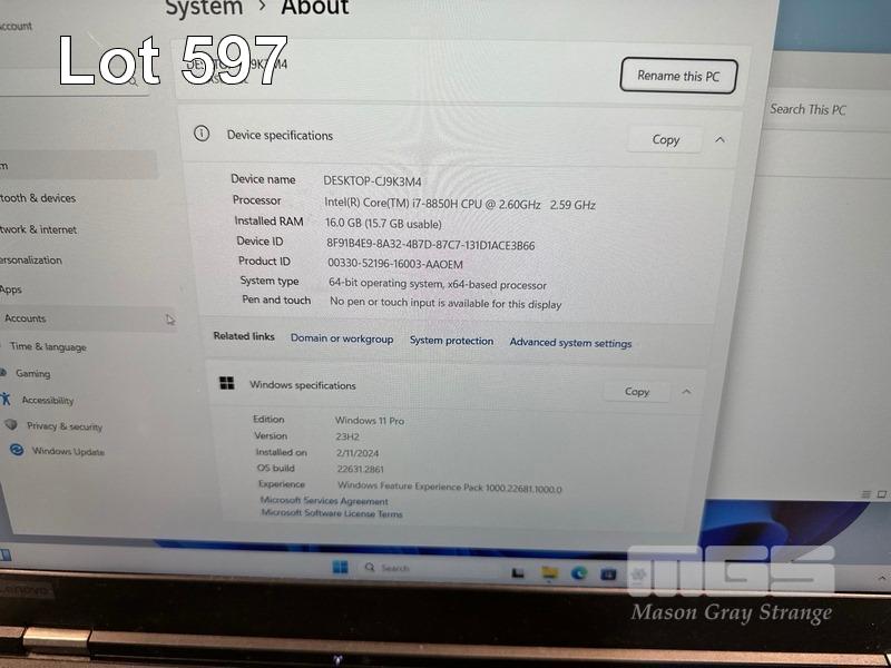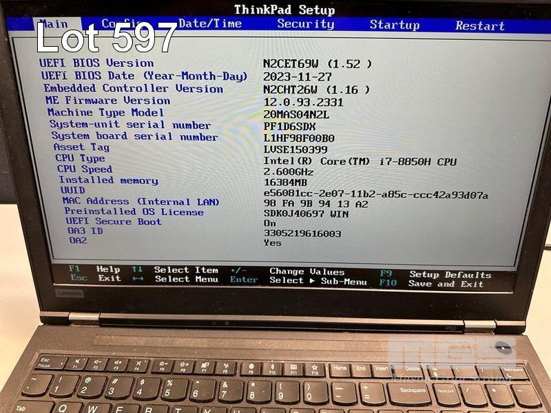 LAPTOP, LENOVO THINKPAD P52 MOBILE WORKSTATION, TYPE 20MA, CORE i7 8850H (8TH GEN) @ 2.6GHz, 16GB DDR4 RAM, 512GB NVMe M.2 SSD, 15.6" WIDESCREEN (1920x1080), 4GB NVIDIA QUADRO P2000 VIDEO, Wi-Fi, BLUETOOTH, WINDOWS 11 PRO INSTALLED (NO POWER SUPPLY) (NOTE: NO BATTERY, MARKS & SPOTS ON SCREEN) S/N:PF1D6SDX
