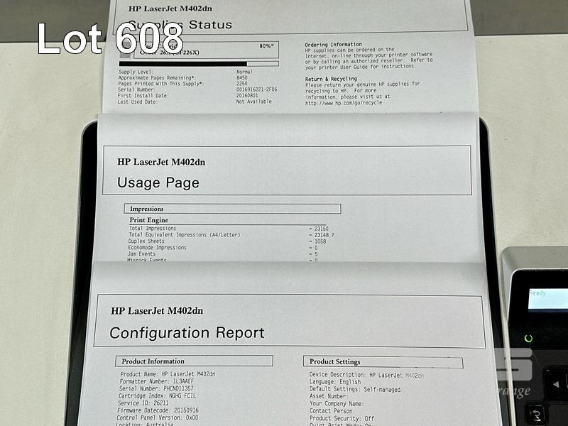 PRINTER, HP LASERJET PRO M402dn LASER, USB, NETWORK, 23,150 PAGES (TEST PAGE ATTACHED)