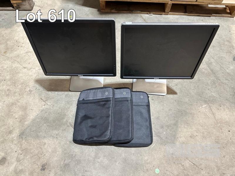 2 x DELL P1914Sf 19" LCD MONITORS, 3 x HP LAPTOP SLEEVES