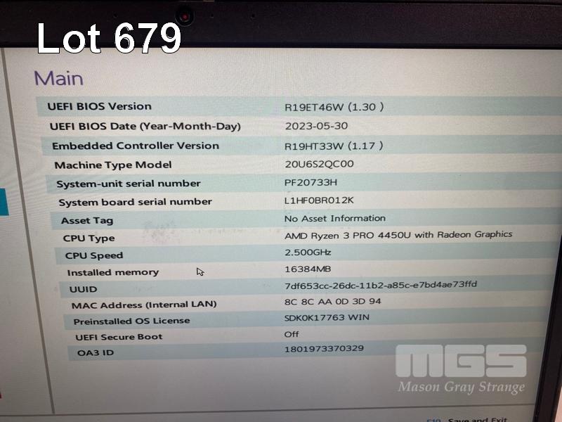 10 x LAPTOPS INC - 8 x LENOVO THINKPAD L14, AMD RYZEN 5 PRO 5650U @ 2.3GHz, 16GB RAM, 256GB SSD, WINDOWS 11 PRO EDUCATION INSTALLED - 1 x LENOVO THINKPAD L14, AMD RYZEN 5 PRO 5650U @ 2.3GHz, 16GB RAM, 250GB SSD, WINDOWS 11 PRO EDUCATION INSTALLED - 1 x LENOVO THINKPAD L14, AMD RYZEN 3 PRO 4450U @ 2.5GHz, 16GB RAM, 256GB SSD, WINDOWS 11 PRO EDUCATION INSTALLED (NOTE: ALL VARIOUS DAMAGE, SOME WITH FAULTS) (NO POWER SUPPLIES)