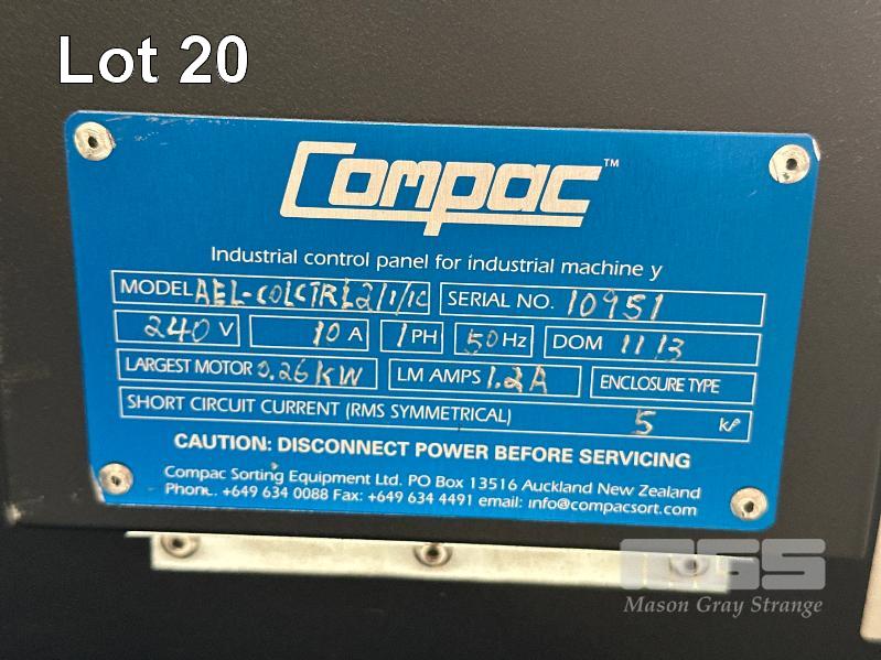 COMPAC 5000C INVISION SORTING UNIT, MOD: AEL-COLCTRL2/1/10, SERIAL: 10951 WITH PLC, WINDOWS LICENCE & ACCESSORIES