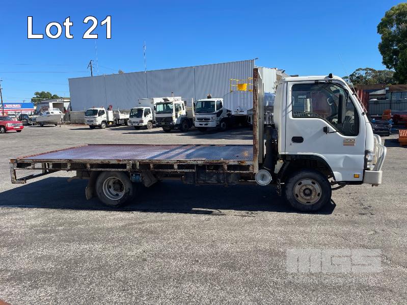 2007 ISUZU NPR 4X2 FLAT BED TRUCK REG: XSP251 (SA) (EXPIRED) VIN: JAANPR75L6710290C ODO: 275021 SITEC 150, 5 SPEED MANUAL, DIESEL, 2 DOORS, 3 SEAT, AIR CON, BULL BAR, STEEL TRAY, TRAY: 4525 x 2450mm (WITH 1 KEY/S, NO OWNER'S MANUAL, NO SERVICE BOOKS)