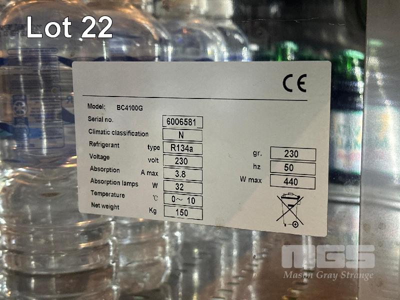 FED 4 DOOR UNDER BENCH DISPLAY FRIDGE, MOD: BC4100G, ILLUMINATED, APPROX 800L CAP, 240V