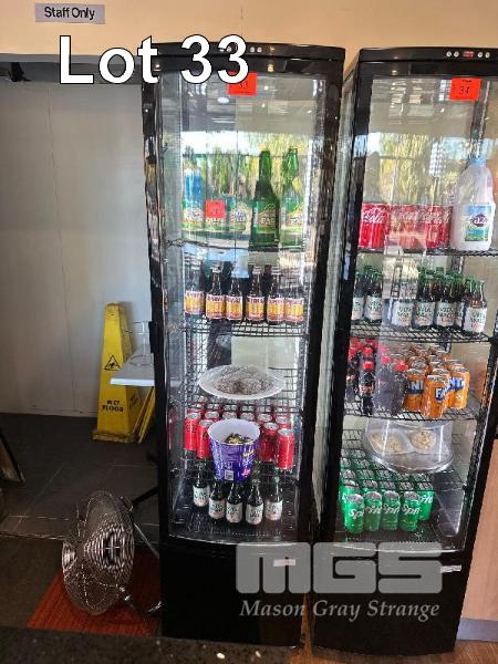 EMERALD SINGLE DOOR UPRIGHT DISPLAY FRIDGE, 4 WAY GLASS, ILLUMINATED, 290L, 240V