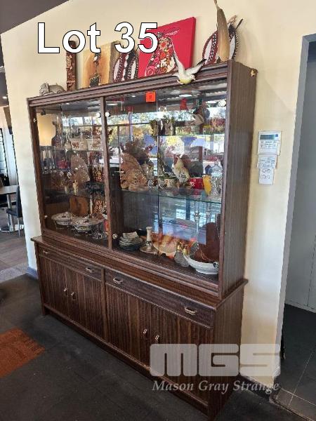 VINTAGE CHINA CABINET, 4 x GLASS DOORS, 2 x TIMBER DOORS, 2 x TIMBER DRAWERS, 1850 x 400 x 2000mm (H)