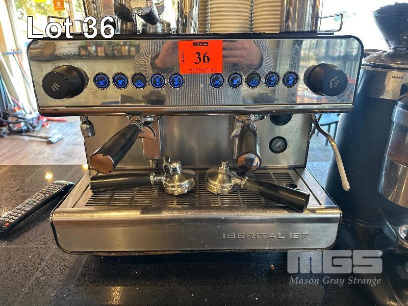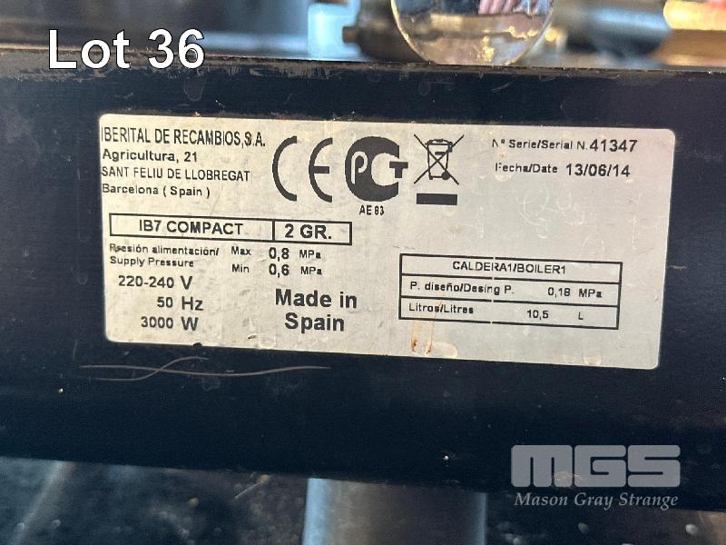 IBERTAL ESPRESSO MACHINE, 2 GROUP, SINGLE STEAMER, MOD: IB7COMPACT, WITH HANDLES, DOM: 2014, 240V 15AMP