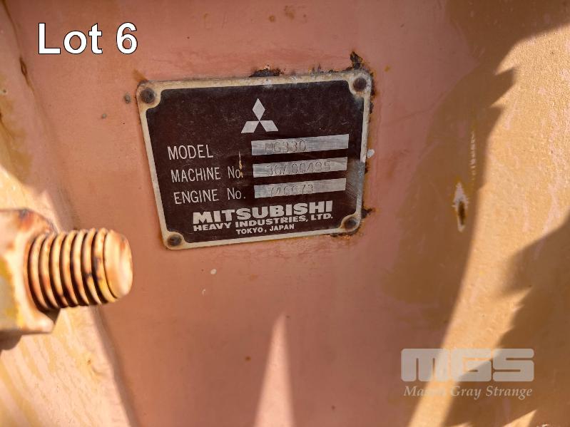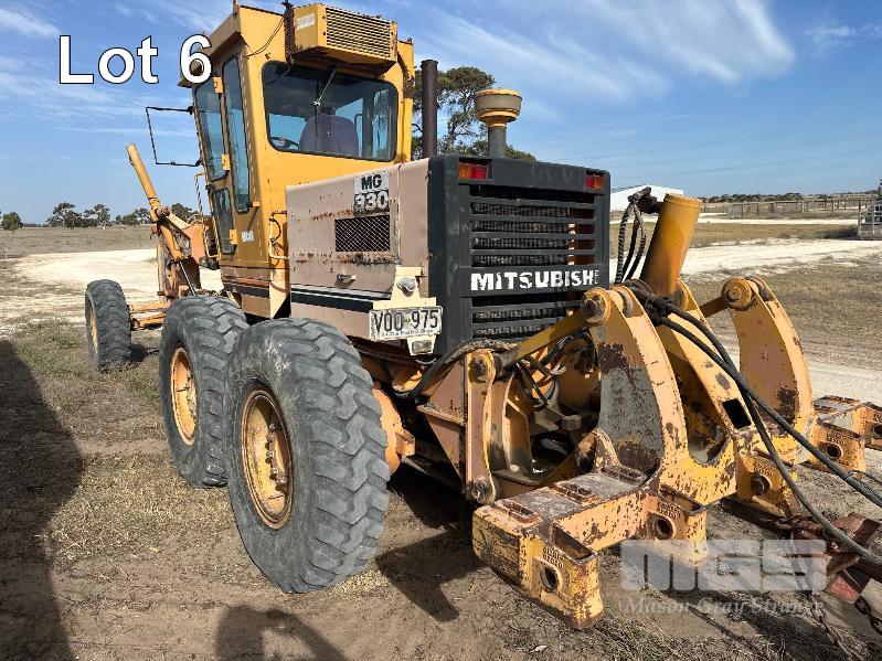 GRADER, MITSUBISHI REG: VOO 975 MOD: MG330 MACHINE NO: 3GA00495 ODO: 6,021 kms INDICATED HOURS: 1,381 INDICATED 6 CYLINDER TURBO DIESEL REAR RIPPERS ROPS CABIN SERVICED: 1/5/25 WITH PAPERS