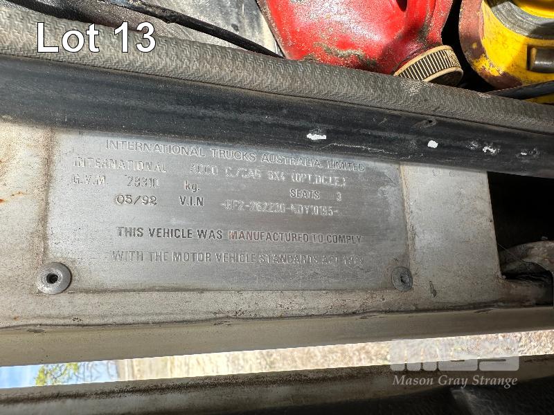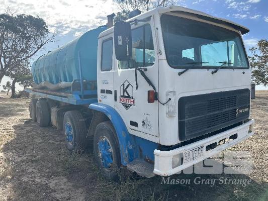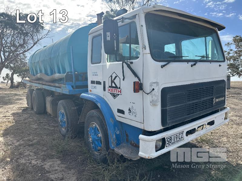 1992 TRAY TOP/WATER TRUCK, INTERNATIONAL REG: SB 19 CZ VIN: 6F2-262200-NDY10195 ODO: 234,735kms INDICATED WITH 7 MODULE POLY TANK, PUMP & DRIBBLE BAR WITH PAPERS