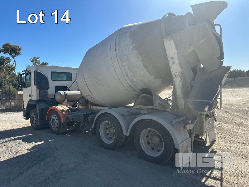 2003 CONCRETE AGITATOR TRUCK, VOLVO FMS 300 MKII REG: SB 87 KA VIN: YV5J4VCNG23D124101 ODO: 281,920 INDICATED 8x4 WITH 7 CUBIC METRE MIXER BOWL, HYDRAULIC DRIVE BOGIE DRIVE, AUTO WITH CURRENT SA ROADWORTHY CERTIFICATE WITH PAPERS