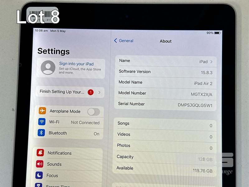 APPLE iPAD AIR 2, 128GB, Wi-Fi, SPACE GREY, MODEL MGTX2X/A, A1566 (NO CABLE, NO CHARGER) S/N:DMPSJGQLG5W1