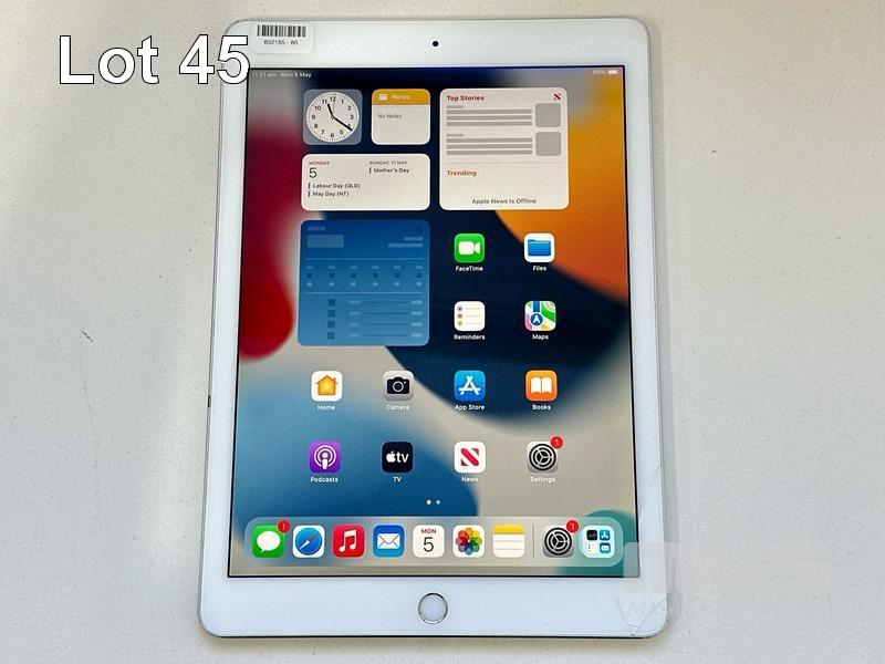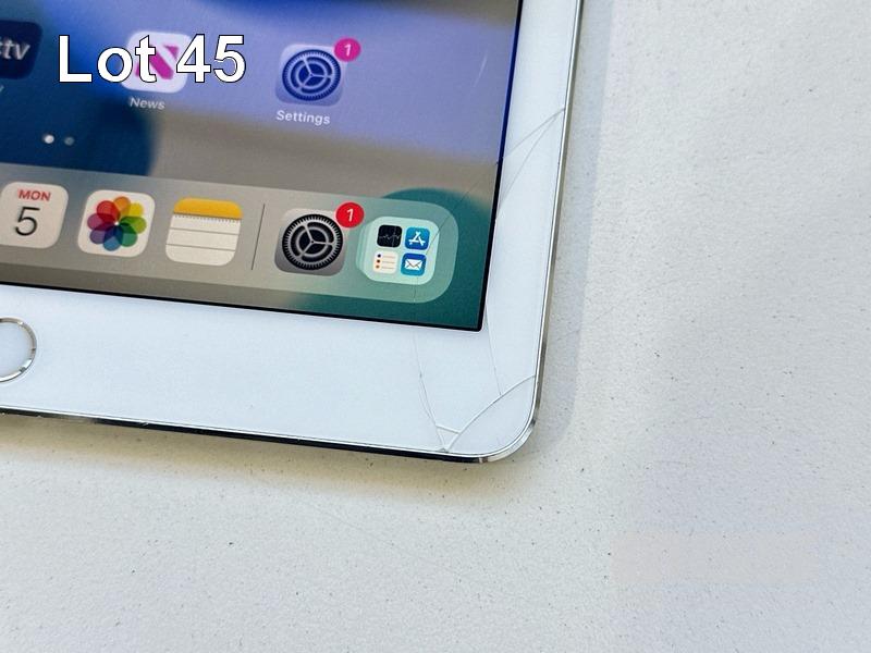 APPLE iPAD AIR 2, 64GB, Wi-Fi, SILVER, MODEL MGKM2X/A, A1566 (NO CABLE, NO CHARGER) (NOTE: CRACKED BOTTOM RIGHT OF SCREEN) S/N:DMPR2EJ5G5VY