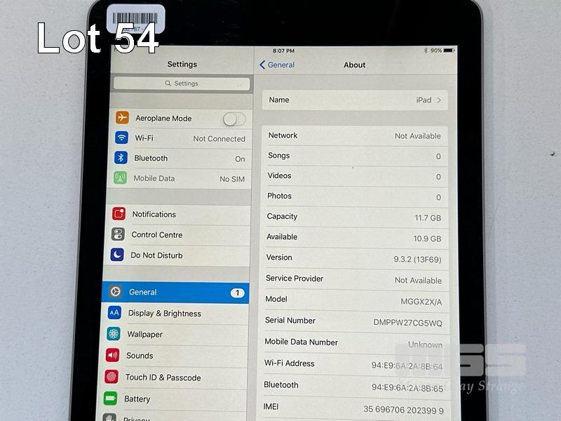 APPLE iPAD AIR 2, 16GB, Wi-Fi, CELLULAR, SPACE GREY, MODEL MGGX2X/A, A1567 (NO CABLE, NO CHARGER) (NOTE: MARKS ON SCREEN) S/N:DMPPW27CG5WQ