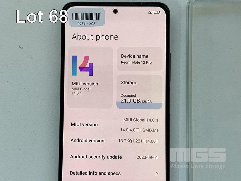XIAOMI REDMI NOTE 12 PRO ANDROID SMARTPHONE, 128GB, MODEL 2209116AG WITH COVER & USB-C CABLE