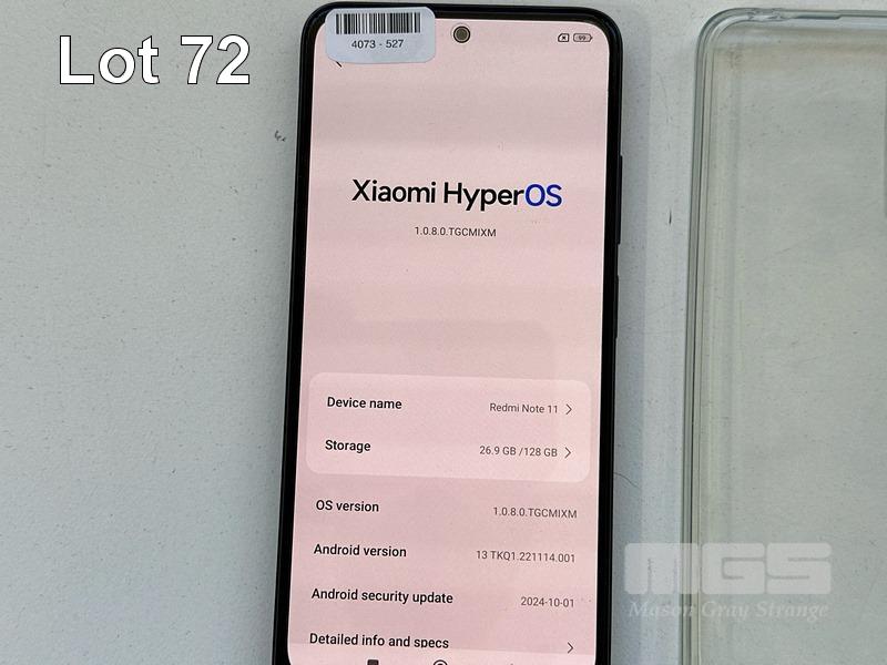 XIAOMI REDMI NOTE 11 ANDROID SMARTPHONE, 128GB, MODEL 2201117TG WITH COVER & USB-C CABLE (NOTE: ENGRAVING ON BACK)