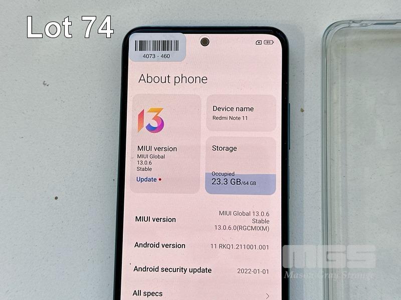 XIAOMI REDMI NOTE 11 ANDROID SMARTPHONE, 64GB, MODEL 2201117TG WITH COVER & USB-C CABLE (NOTE: ENGRAVING ON BACK)