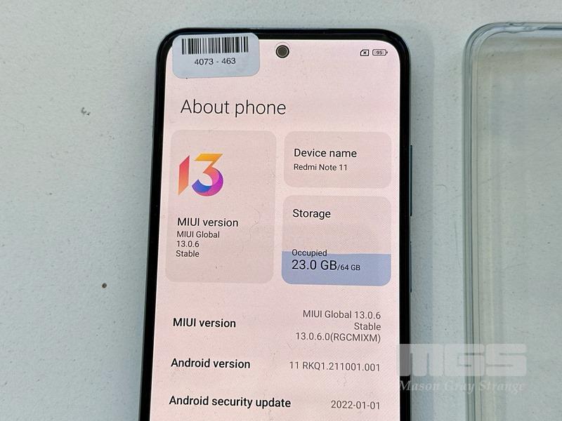 XIAOMI REDMI NOTE 11 ANDROID SMARTPHONE, 64GB, MODEL 2201117TG WITH COVER & USB-C CABLE (NOTE: ENGRAVING ON BACK)