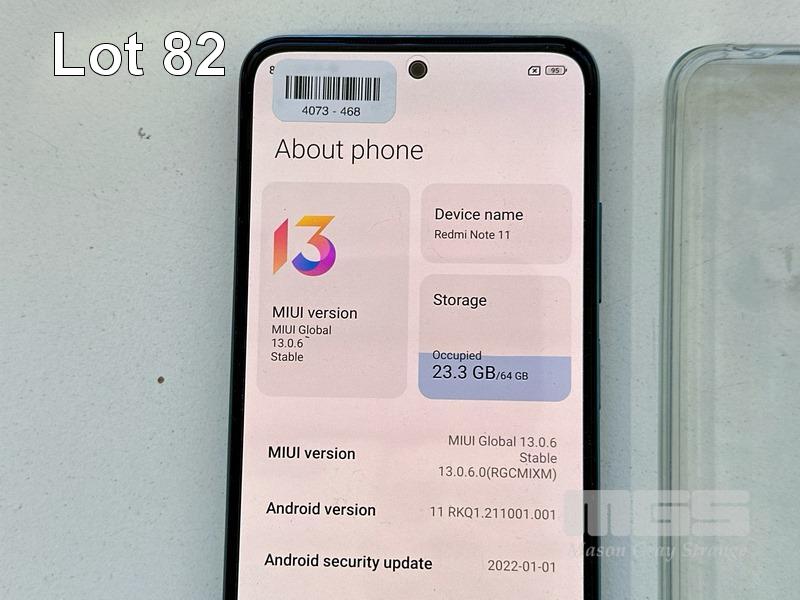 XIAOMI REDMI NOTE 11 ANDROID SMARTPHONE, 64GB, MODEL 2201117TG WITH COVER & USB-C CABLE (NOTE: ENGRAVING ON BACK)