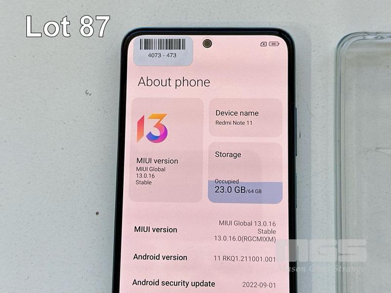 XIAOMI REDMI NOTE 11 ANDROID SMARTPHONE, 64GB, MODEL 2201117TG WITH COVER & USB-C CABLE (NOTE: ENGRAVING ON BACK)