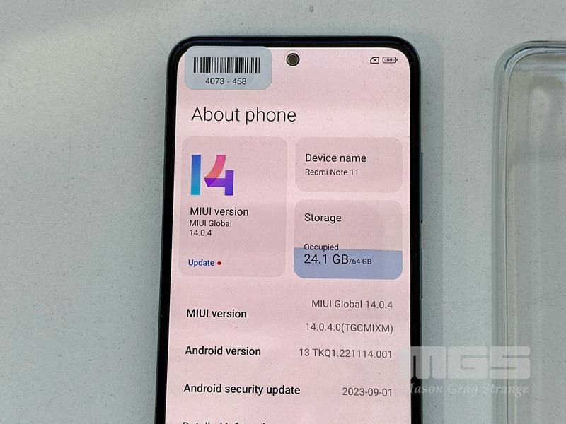 XIAOMI REDMI NOTE 11 ANDROID SMARTPHONE, 64GB, MODEL 2201117TG WITH COVER & USB-C CABLE (NOTE: ENGRAVING ON BACK)