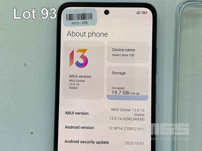 XIAOMI REDMI NOTE 10S ANDROID SMARTPHONE, 128GB, MODEL M2101K7BG WITH COVER & USB-C CABLE (NOTE: ENGRAVING ON BACK)