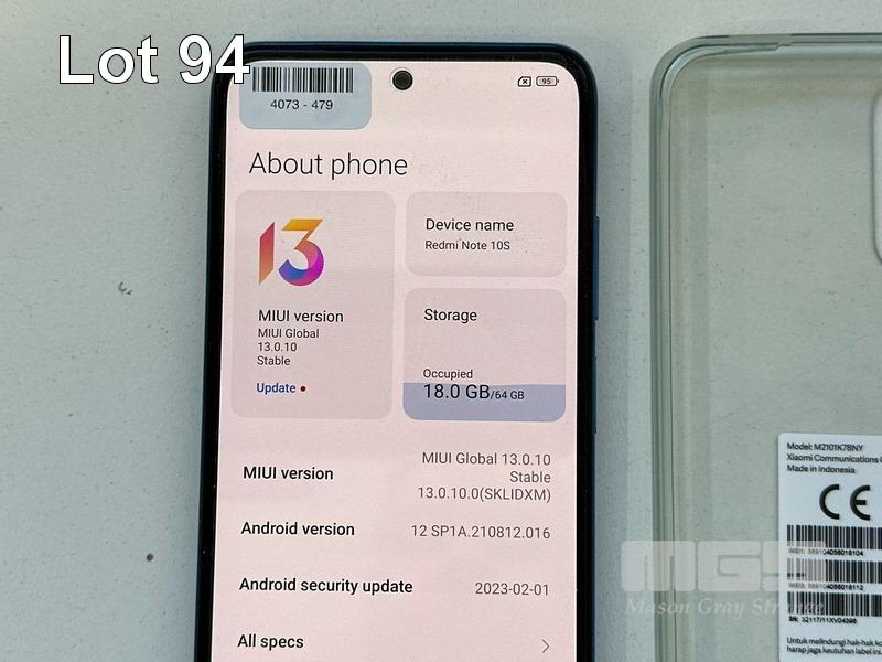 XIAOMI REDMI NOTE 10S ANDROID SMARTPHONE, 64GB, MODEL M2101K7BNY WITH COVER & USB-C CABLE
