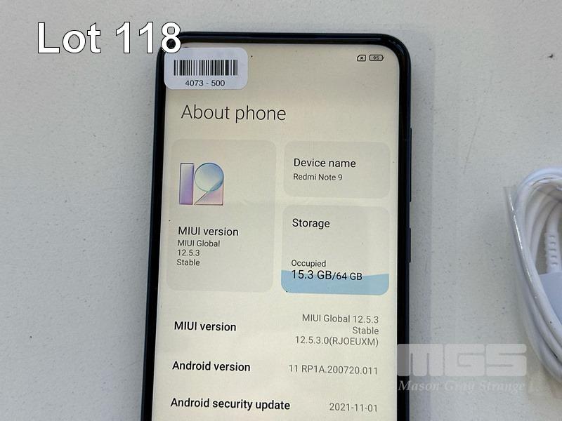 XIAOMI REDMI NOTE 9 ANDROID SMARTPHONE, 64GB, MODEL M2003J15SS WITH USB-C CABLE