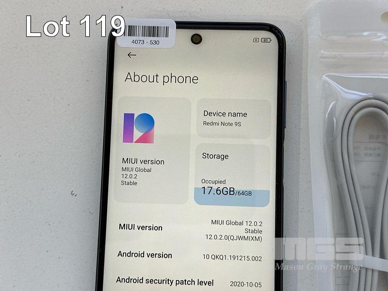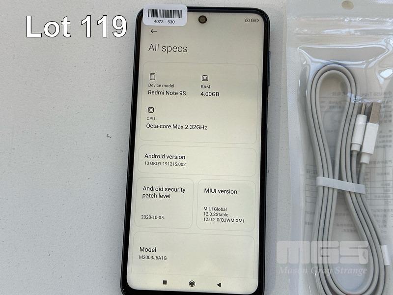 XIAOMI REDMI NOTE 9S ANDROID SMARTPHONE, 64GB, MODEL M2003J6A1G WITH USB-C CABLE (NOTE: ENGRAVING ON BACK)