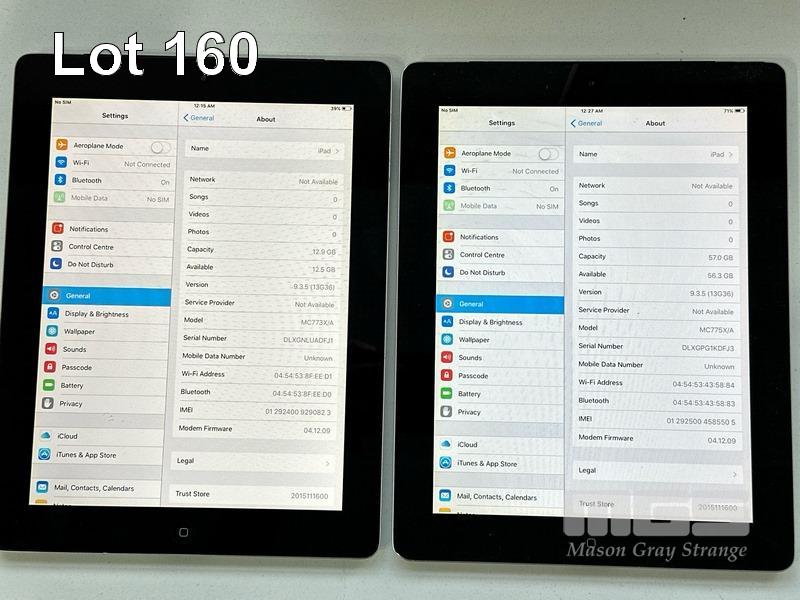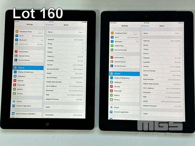 8 x APPLE iPADS INC. - 3 x APPLE iPAD 2, 64GB, MODEL A1396 - 1 x APPLE iPAD 2, 32GB, MODEL A1396 - 1 x APPLE iPAD 2, 16GB, MODEL A1396 - 1 x APPLE iPAD 1ST GEN, 64GB, MODEL A1337 - 1 x APPLE iPAD 3RD GEN, 64GB, A1430 - 1 x APPLE iPAD 3RD GEN, 32GB, A1430 (NO CABLES, NO CHARGERS)