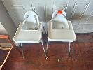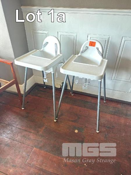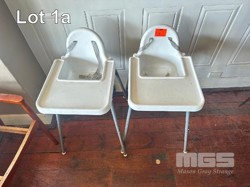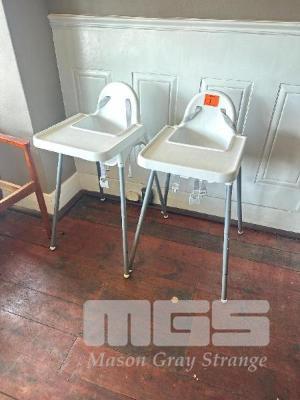2 x HIGH CHAIRS, PLASTIC, ADJUSTABLE HEIGHT LEGS