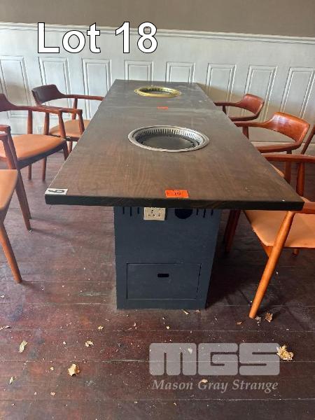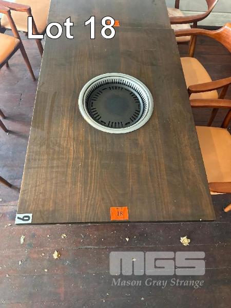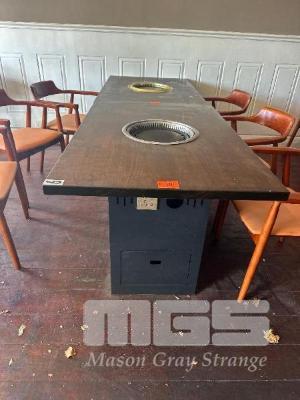 BBQ GRILL DINING TABLE, 1200 x 800 x 760mm (H), 35mm TIMBER TOP, 340mm (D) HOT PLATE, 240V 10amp