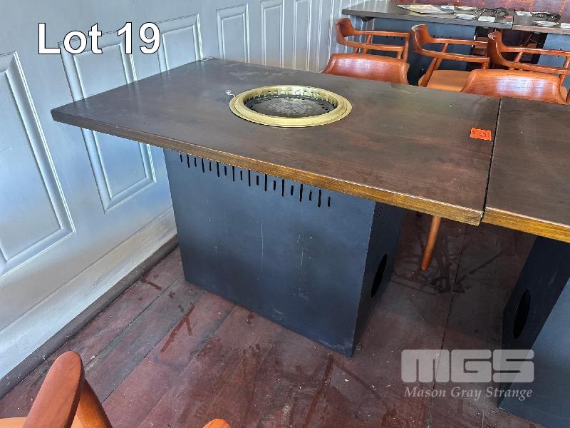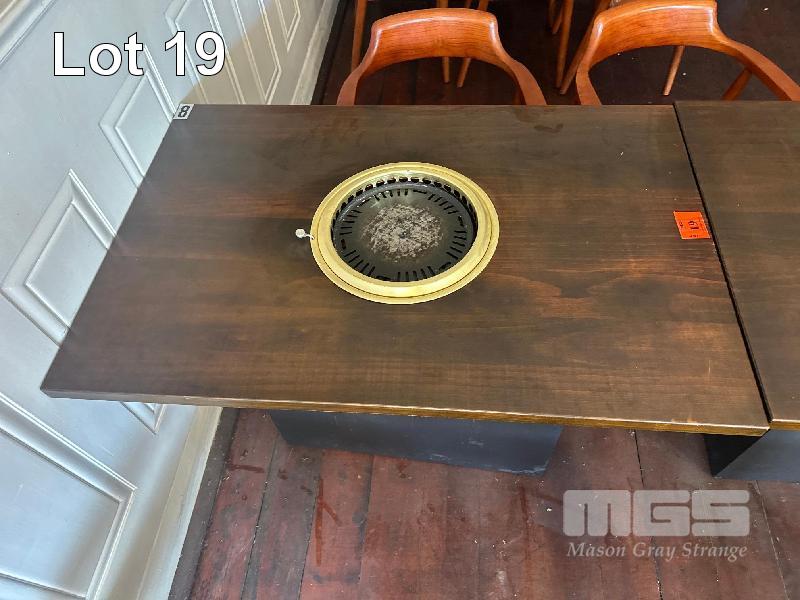 BBQ GRILL DINING TABLE, 1200 x 800 x 760mm (H), 35mm TIMBER TOP, 340mm (D) HOT PLATE, 240V 10amp