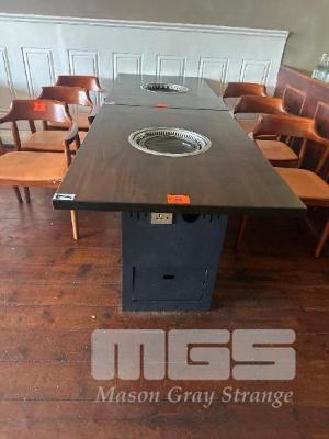 BBQ GRILL DINING TABLE, 1200 x 800 x 760mm (H), 35mm TIMBER TOP, 340mm (D) HOT PLATE, 240V 10amp