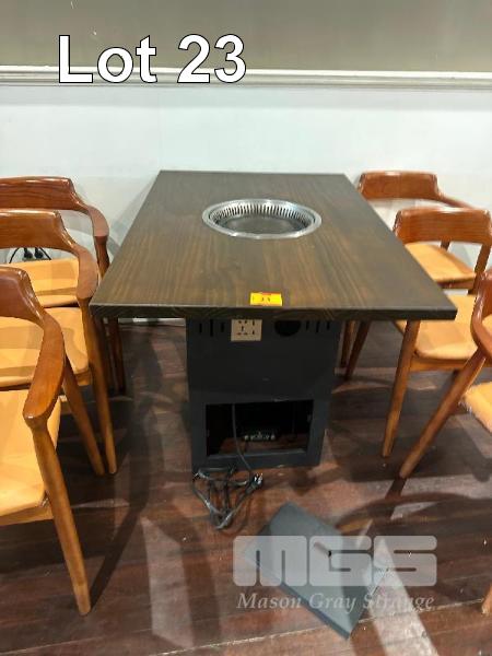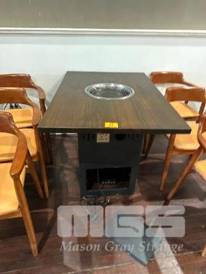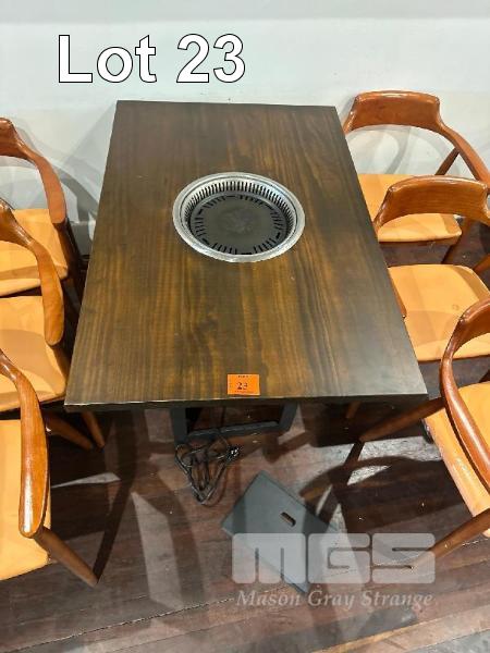 BBQ GRILL DINING TABLE, 1200 x 800 x 760mm (H), 35mm TIMBER TOP, 340mm (D) HOT PLATE, 240V 10amp