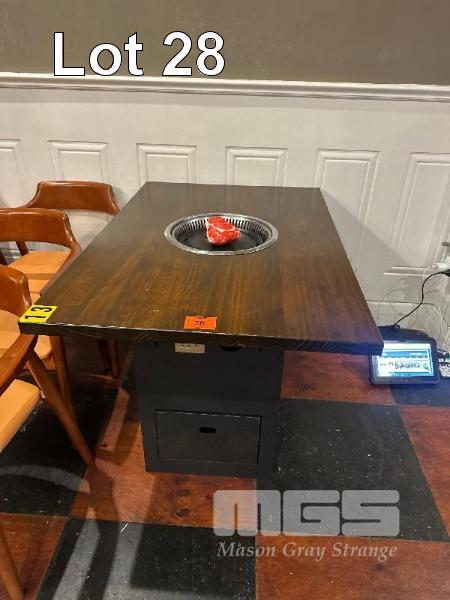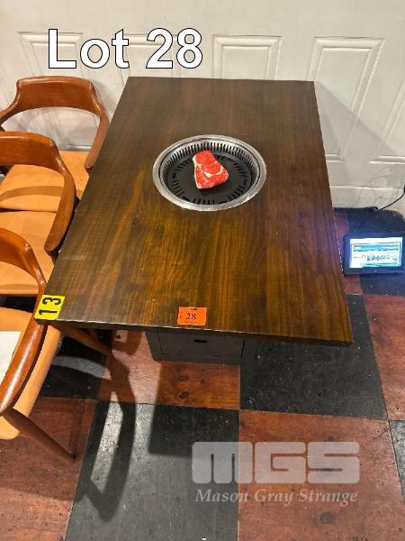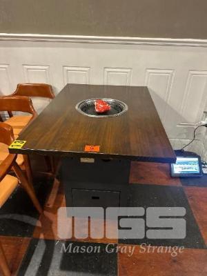 BBQ GRILL DINING TABLE, 1200 x 800 x 760mm (H), 35mm TIMBER TOP, 340mm (D) HOT PLATE, 240V 10amp