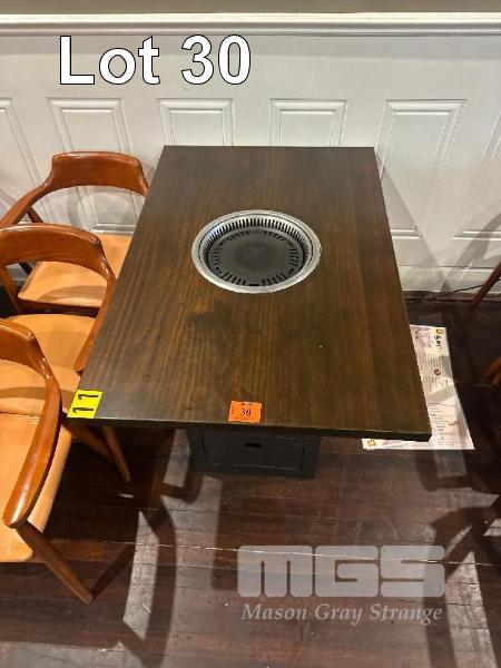 BBQ GRILL DINING TABLE, 1200 x 800 x 760mm (H), 35mm TIMBER TOP, 340mm (D) HOT PLATE, 240V 10amp
