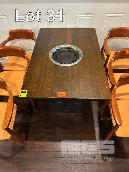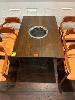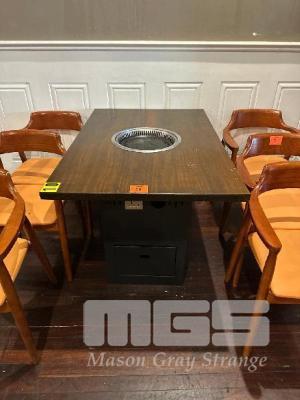 BBQ GRILL DINING TABLE, 1200 x 800 x 760mm (H), 35mm TIMBER TOP, 340mm (D) HOT PLATE, 240V 10amp