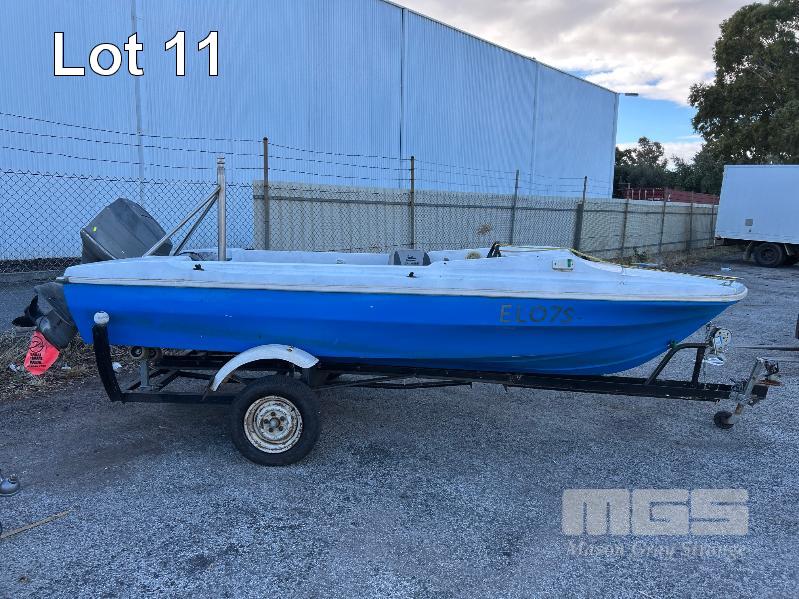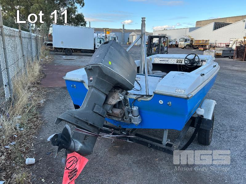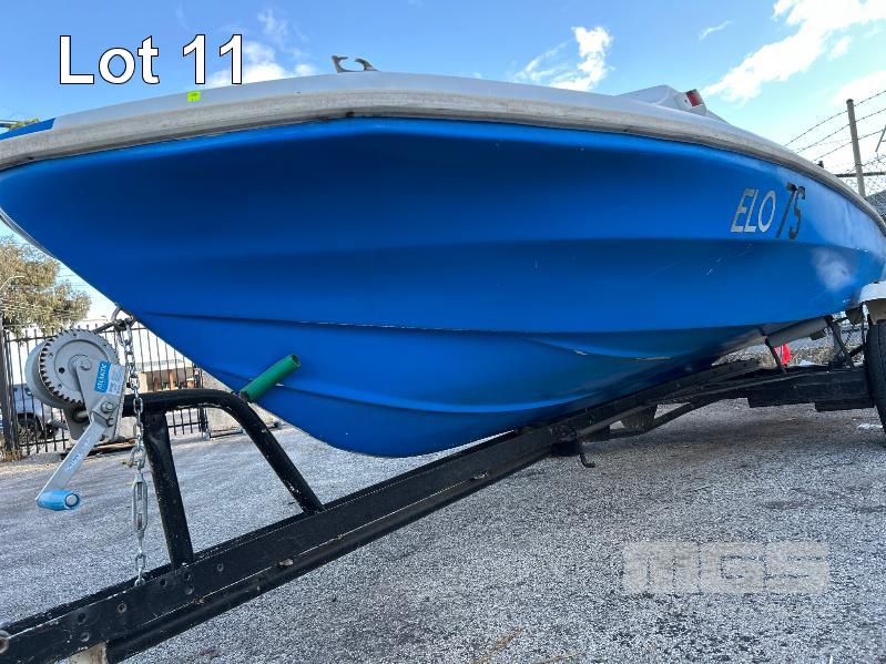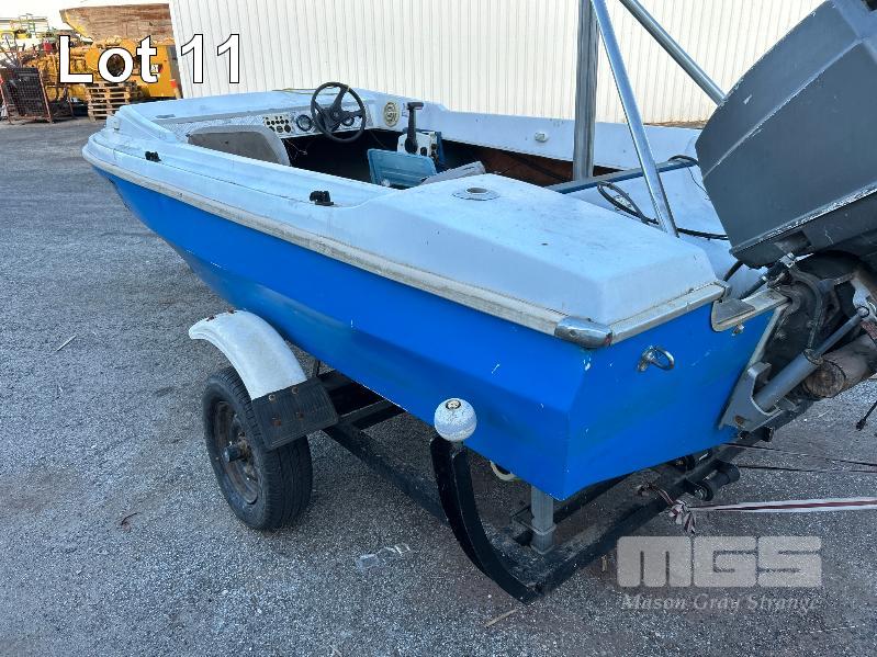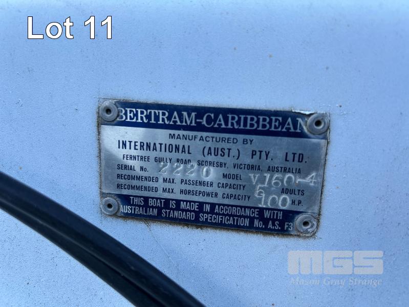 RUNABOUT BOAT, BERTRAM CARIBBEAN MOD: V160-4 4.67m FIBREGLASS HULL HIN: AUTSA024478BZ7 MARINE REG: EL07S POWERED BY JOHNSON 70HP OUTBOARD ENGINE ON SINGLE AXLE TRAILER, NO REG PLATES BALL HITCH, JOCKEY WHEEL HAND WINCH