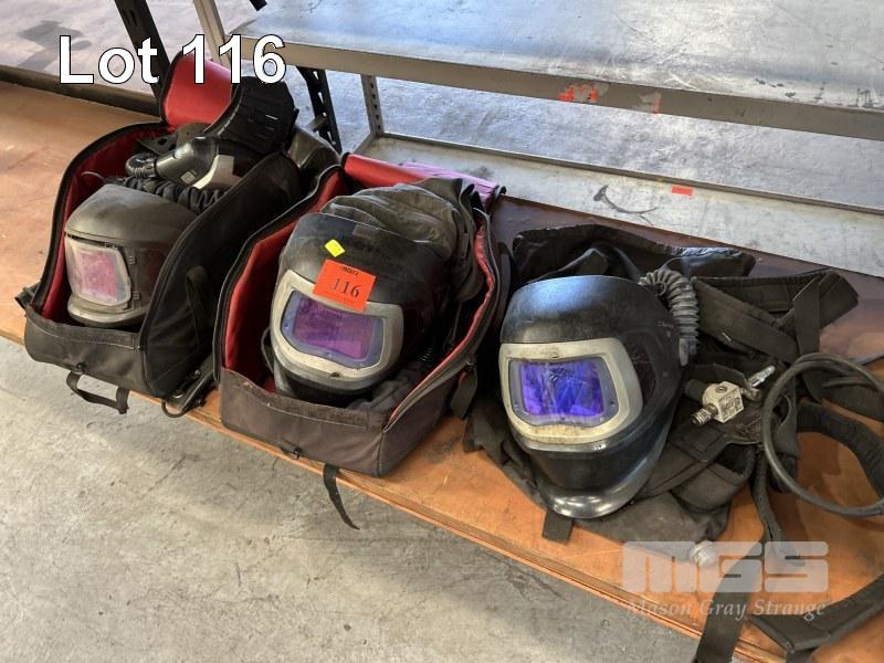 3 x POSITIVE FEED WELDING HELMETS, 3M SPEEDGLASS