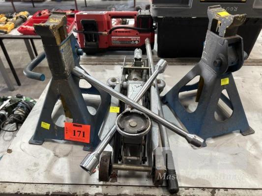 TROLLEY JACK, SCA, 2 x CHASSIS STANDS & TYRE BRACE