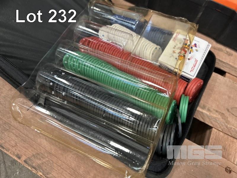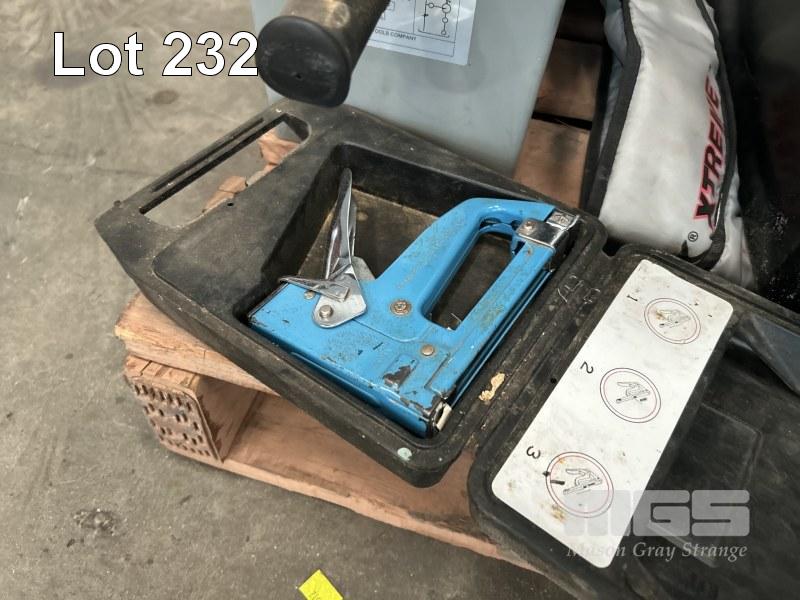 STAPLE GUN, POKER CHIP SET, ETC